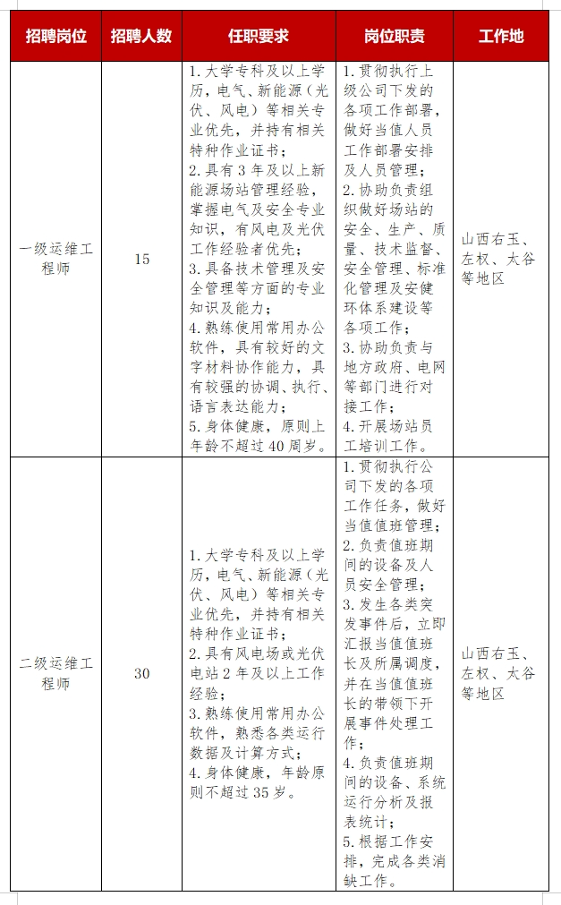 國(guó)電投山西能源服務(wù)有限公司委托山西晉鑫仁和人力資源管理有限公司,現(xiàn)面向社會(huì)公開招聘數(shù)名工作人員,熱忱歡迎符合條件的英才踴躍報(bào)名。